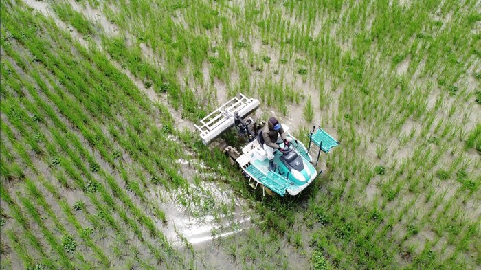 今日は、祭日でお休みだったが朝から青空。せっかくならと今年新調した空調服ファンをセットして楽とーる除草を2回目に出動。1回目で慣れているのでルンルンと始めたのだが3往復目あれ?」突然、除草機が止まった。ん!ギヤ抜け?と思ってシフトを見たが入ってる。まさかと思って除草機を見るとなんと除草機を駆動するユニバーサルジョイントが2本とも抜けていた。しかも1本は、中のシャフトが脱落して無くなってる。これは、万事休す、、でもここまで来てただ帰りたくないのでタイヤでビッシリ生えてるコナギだけでも踏もうと走り回って作業終了。まあこの手の機械は、今年購入した「のるたんJJ1」も含めて本当に発展途上だなと感じます。でもこれからどんどん改善して行くと信じています。しかし突然の機械除草の終了で後は、テデトール除草をするのみとなりました。これまでの機械除草が少しでも効いていることを祈るばかりです。