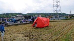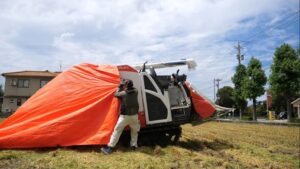 雨マークのフェイクで何度もシート掛けしました・市街地の稲刈り突破しました・2023