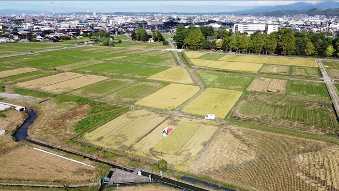 昨晩は、凄い豪雨でもしかしたら稲刈り出来るかという希望も儚く消えた。そして都合の良い?ことに急遽の会合で金沢市のホテルに行くことになって諦めて出かけました。ところが会合が終わって外に出るとメッチャお天気がいい。そこで夢太くんに稲刈りしたいと言うと子守りで出れないとのこと。仕方ないので妻と十数年ぶりに稲刈りしようと稲刈りに突入した。今回のエリアは、宅地造成で今年が最後の作付けのエリア。ザルビオAI生育診断でずいぶん後回しになっているコシヒカリなのでいい加減刈ってあげないと刈り遅れると思って急いだ。しかしさすがに妻だと心もとないのでスーメカが出動してくれて安心でした。ところが刈り始めてから何やら異音がし始めてそれがどうも駆動系と確信を持ち始めてスーメカに診てもらおうと思って振り返るとそこに来たのは、ドローン撮影に来た夢太くん。せっかくなので撮影してもらおうと稲刈りを続行していたら異音が激しくなってパッツンという音がしていきなり異音がしなくなった。明らかのドライブベルトの2本のうちの1本が切れた。でも動力がちゃんと発生しているのでもう1本は、無事なのでゆっくりとこの1枚を刈り切ることに。なんとか無事に刈り切って下を見るとやはり1本切れていて幸いなことにどこに絡んでいませんでした。結局5枚しか刈れなかったけど明日の全社員出社の平日に切れていたのでは、ダメージが大きかったので休日出勤稲刈りで良かったとも言える。さっそく帰社してドライブベルト交換を始めたが刈取部オープンしないといけないのでスーパーメカニックも時間がかかって日没サスペンデッドで最終組み立ては、明日の朝になった。でもER系は、このドライブベルトが弱点だよねぇ~d( ̄^ ̄)