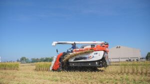 稲刈り全開だがなぜか最高速が出ないトラブル発生・ファンのおかげで逆Yの字刈りを会得しました・2023