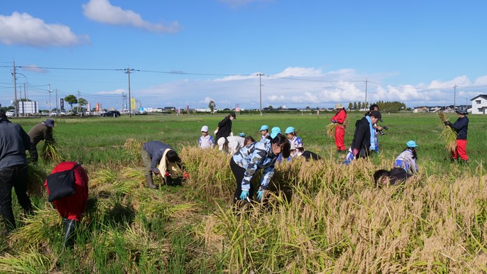 津幡とくの&とくの幼稚園のダブルヘッダー稲刈り・紙マルチ栽培田に土作り資材散布・2024