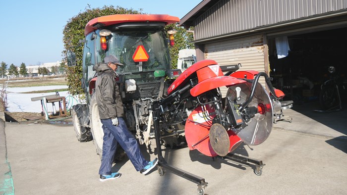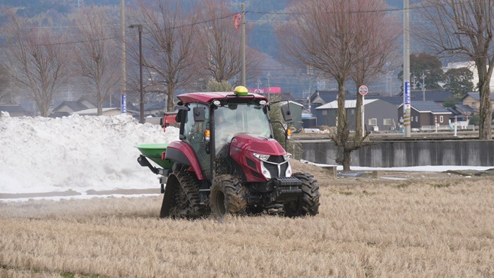 今日は、朝から快晴でカキモチ下し日和。しかも今年は、綺麗に仕上がっているのでご機嫌で作業出来ました。そして同時に春作業も再開です。1月の好天で頑張っていたあぜクリーン作業も残雪のある中ですが再開しました。あぜクリーン作業を早く終わらせて居座り寒波で遅れている畦塗りにすぐに突入するためにガイアを搬入しました。さらにお隣りさんも雪で中断していた土作り資材散布を再開。しかも新型ブロキャスと新型ハーフクローラートラクターの組み合わせです。さらにこの新型ブロキャスには、ユニッククレーン付きでメッチャ簡単に土作り資材を積み込むことが出来ます。なんか一気に進化していてビックリです、、(◎_◎)