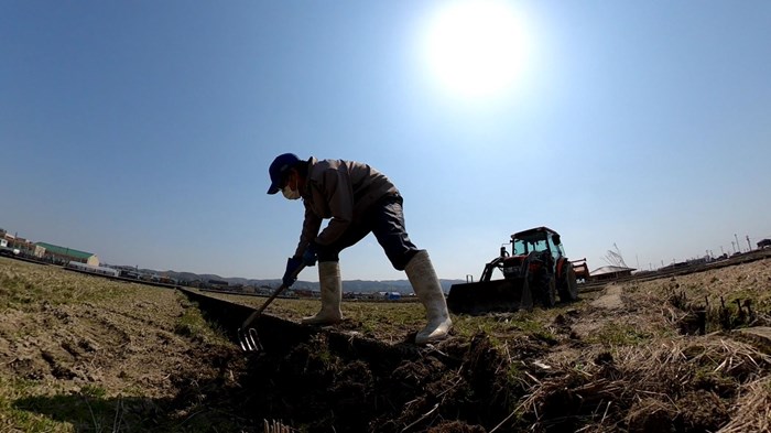荒起こし前に田んぼの修繕に回っています・体調不良につき撮影を息子に丸投げお店番してます・2025