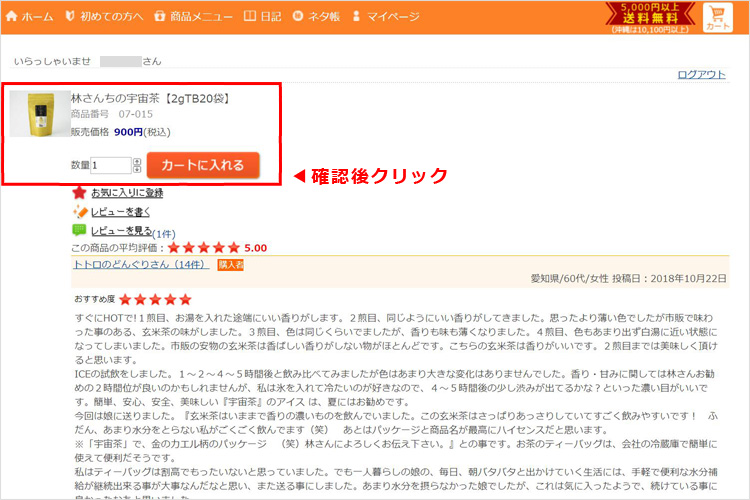 1.注文履歴一覧を表示するページで、前回の注文をクリック