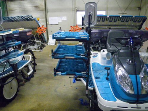 ちなみにもう一台の田植機は邪魔にならないようにちゃーんと折りたためるのです、(画像、左側)