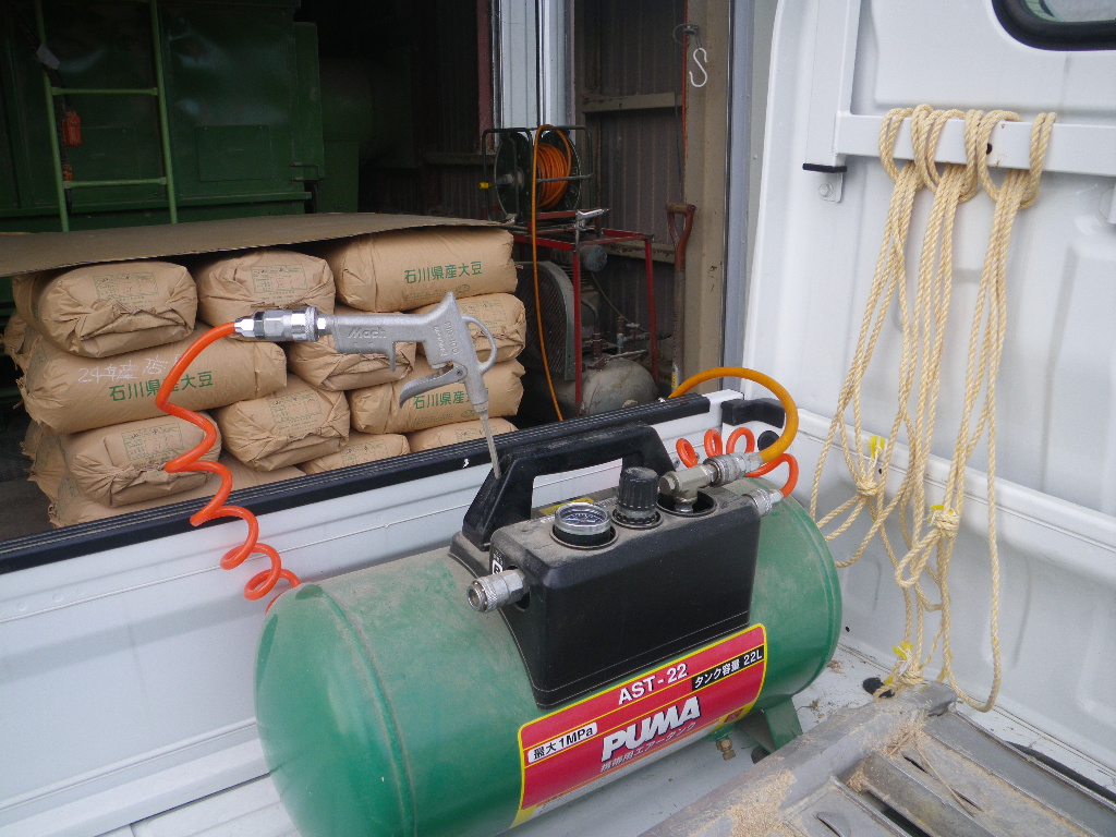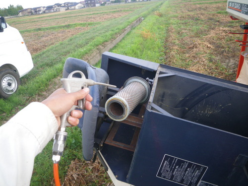 田んぼに持ち込み、定期的にエアーでラジエーター回りのホコリを吹き飛ばします、