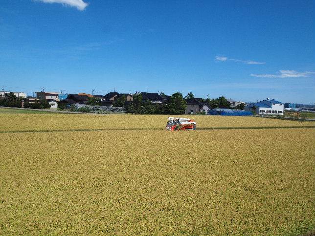 今日は、台風16号の影響ですごいフェーン現象です。でもたまたま乾燥のみのお客様の予約日で乾燥機4台のうち2台しか稲刈り出来ません。そこで午前中だけでその2台を満タンにしてフェーンの酷い午後の稲刈り回避する作戦に出ました。しかし私のコンバイン1台で午前中で2台満タンは、少々厳しくしかも田んぼが点々と分かれている。そこで予め次の田んぼにもう1台のコンバインを用意しながら刈りました。刈り終えたらコンバインをそこ置いて速攻で次の田んぼに私が移動。そこに置いてあるコンバインで刈っている間に専務が、次の田んぼにそのコンバインを移動するという離れ業を行いました。そして最後は、刈り取りをスピードアップするために大きな田んぼに突入!一気に乾燥機2台が満タンになりました。まあコンバインが2台あるのと専務が籾すりしながらトラック移動が出来るから可能な技ですね。最近、今日ほどでなくても良く使う技ですが、林さんちは、田んぼが散らばっているので移動にいかに時間がかかるかということですね。