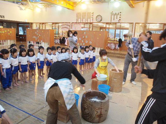 とくの津幡幼稚園で餅つき頑張りました・少々節々が痛みます