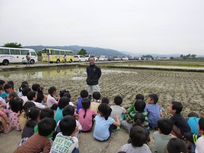 やはり風邪が治らず朝イチに病院に行きました。そして藤蔭幼稚園の田植えでした。なんとか終えることが出来てホッとしています。でも今年は、藤蔭と白銀の田んぼを新しい場所にしたのですが、水持ちは悪いわ、駐車スペースでトラブル続出でちょっと対処しないといけないかも。保護者が1家族で1台乗ってくるので60数台がズラリと狭い農道に並ぶのは、やはりマズイ。でも最後、子供達にお礼を言われたのが一番のお薬でした。