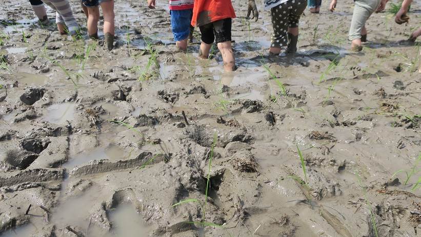 藤蔭幼稚園の田植えと富陽小お米授業・大豆播種終了