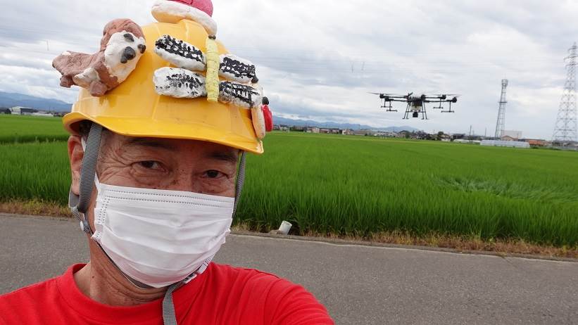 すると朝に岡元農場からドローン防除するという連絡があってスクランブル。かねてより撮影をお願いしてあったのですが感謝です。そして最新型のDJI AGRAS T20ドローンは、凄い性能でビックリです。30aを2分半!昔は、こんな大きな田んぼは、効果の薄い粉剤でやっていました。液剤散布となると長いホースを引き摺って散布するか特殊なジェット噴射の機械で散布していました。それがあっという間ですからドローン恐るべしです。安全性もかなり向上して今年から自動航行が許可されたさらに安全でオペレーターの負担が少なくなりました。どんどん進化するドローンにビックリでした(◎_◎)