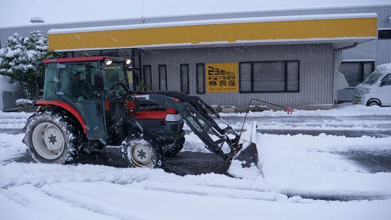 今年初のトラクター除雪をしました・社長の空中回転で作る5升鏡餅・2021
