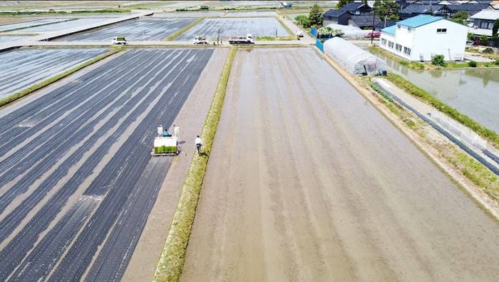 今日は、紙マルチ田植え最終日。しかしとくの幼稚園&津幡とくの幼稚園の田植えもあるので分身の術で頑張りました。紙マルチ田植えは、紙マルチの抑えロールに泥が付着して回らず紙マルチ破れが頻発するトラブル。さらに紙マルチカッターのワイヤステーの破損で人力で切ることになったしたけどなんとか終了出来ました。
