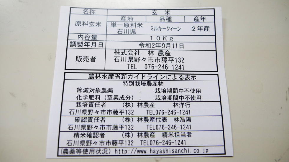 例えば林さんちのお米だと産地は、もちろん石川県です。